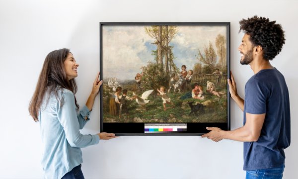 El viaje artístico de Palizzi le llevó finalmente a la Exposición Universal de París de 1855 y a los Países Bajos. Tras su regreso a París en 1863, comenzó a trabajar intensamente en estudios de la naturaleza. En sus obras, que ofrecemos como impresiones artísticas de alta calidad, quedó patente su profundo conocimiento y amor por la naturaleza. En los años siguientes, se dedicó a explorar la luz en sus cuadros, tanto en escenas de paisajes al aire libre como en interiores, creando a menudo encantadoras escenas de género de niños con animales.