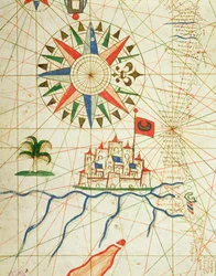 Egipto, el río Nilo y El Cairo, de un atlas náutico, 1646 (detalle)(Egypt, the River Nile and Cairo, from a nautical atlas, 1646 (ink on vellum) (detail from 330936))Italian School |
