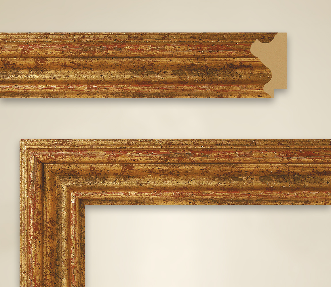 | Un marco dorado que hace honor a su nombre es el marco de la imagen de Michela. Además de su color, este marco de madera real también impresiona con su forma. Aquí, se incluyeron varios tipos de paneles en el marco, que juntos dan un ancho de 57 milímetros y una altura de 37 milímetros. Con una barra de filigrana en el extremo y las siguientes pequeñas llanuras, se levanta un ala, que también tiene una barra muy estrecha en el extremo superior. Después de una superficie ligeramente más ancha y arqueada hacia adentro, el cuadro Michela se detiene con una curvatura final hacia el interior de la imagen. La ingeniosa subida y bajada de la construcción de madera se complementa con elegancia con un venerable ambiente dorado. Aplicado como un oro martillado, el color amarillo dorado brilla en tonos a veces más claros y a veces más oscuros. El brillo del color está impregnado de tonos rojizos y marrones brillantes que brillan a través del oro. Este esquema de colores vibrantes crea una espléndida estructura en el marco, dándole un carácter ligeramente antiguo. |